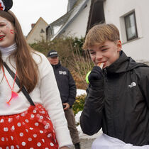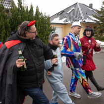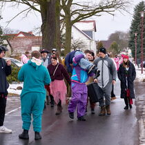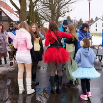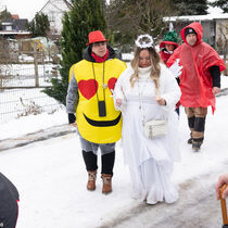 Etwa sechs Dutzend Teilnehmende waren unterwegs in unterschiedlich bunten Kostümen. Es wurden mehr als 7.500 Gramm Speck und über tausend Eier gesammelt. Trotz wechselhaftem Wetter blieb die gute Laune erhalten, getragen von Zuversicht und herzlicher Gemeinschaft.