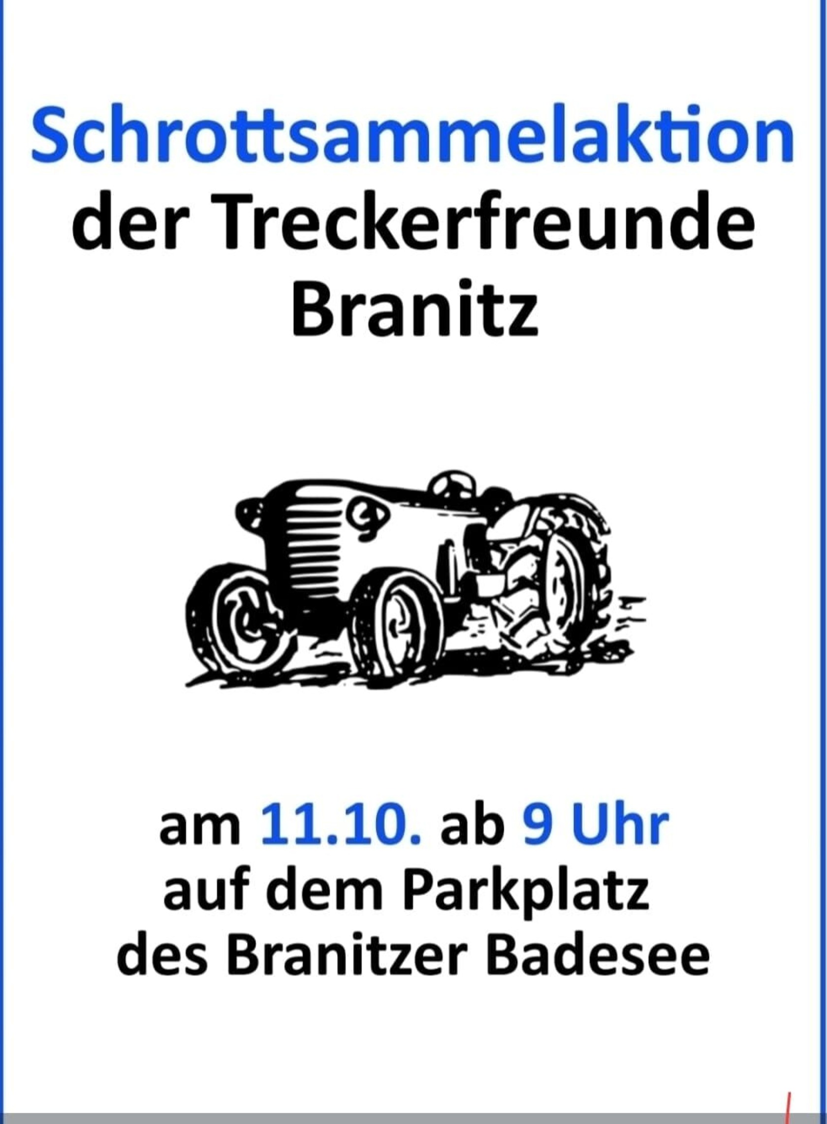 Die alljährliche Schrottsammelaktion ab 9 Uhr im Dorf Branitz sowie auf dem Parkplatz des Branitzer Badesees.
